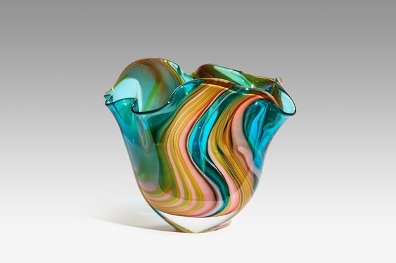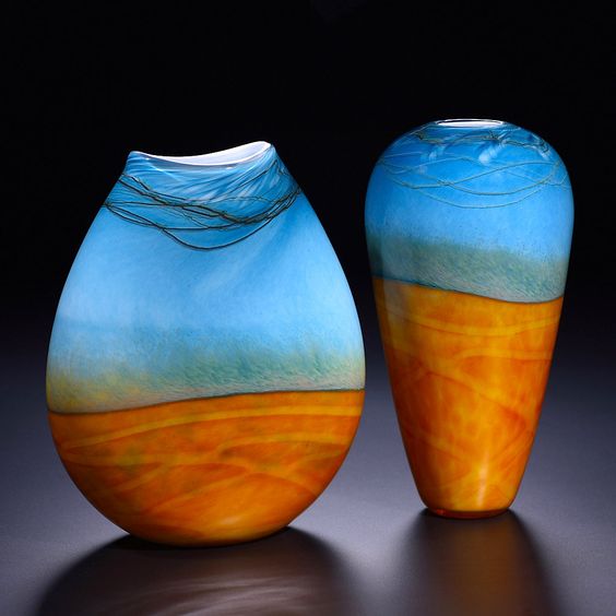 The interplay of form and color in contemporary glass art reflects broader themes of innovation and craftsmanship in modern design. These artistic pieces, exemplifying intricate fluidity and depth through its colors and clear glass construction, serves as a metaphor for the blending of functionality and aesthetic appeal in our everyday objects.